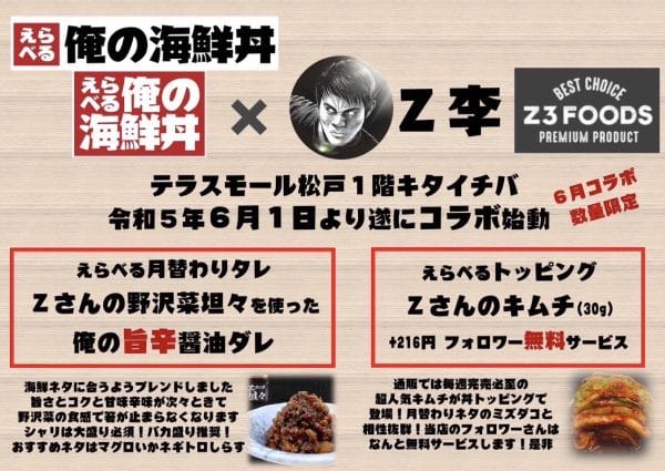 今日のお知らせはパチスロ店の案内じゃないぜ。テラスモール松戸一階キタイチバにて「えらべる俺の海鮮丼」とのコラボが始動。