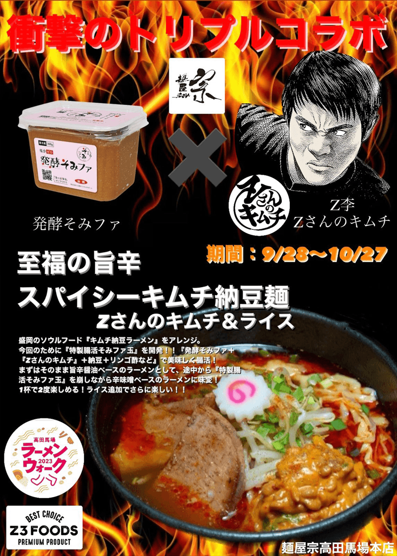 至福の旨辛スパイシーキムチ納豆麺という味の想像がなかなかつかないラーメンだけど、食べたらめちゃめちゃハマるやみつき麺。高田馬場ラーメンウォーク2023も開催中だぜ。 pic.twitter.com/NrR1zQyZXX— Z李 🇺🇦 NO WAR 🕊 (@ShinjukuSokai) October 2, 2023